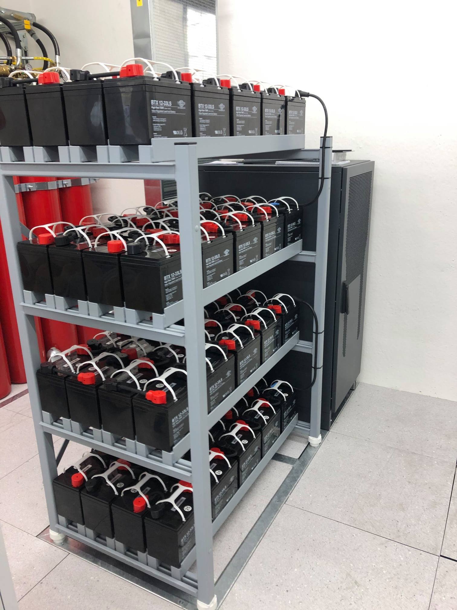USV-Anlage mit Li-Eisenphosphat Batterien halber Platzbedarf gegenüber Bleibatterien.