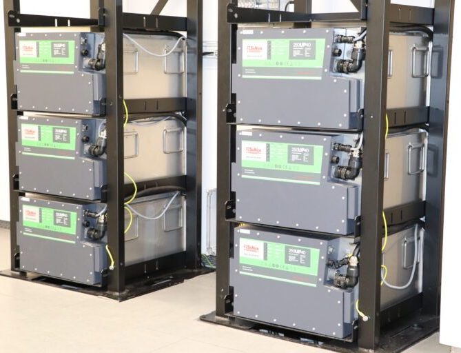 USV-Anlage mit Li-Eisenphosphat Batterien halber Platzbedarf gegenüber Bleibatterien.