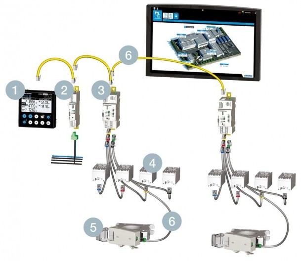 Ein System zur Überwachung elektrischer Anlagen mit vielen Stromkreisen mittels RCM-Integration stellt das modulare Konzept Diris Digiware von Socomec dar. Es kombiniert die RCM-System-basierte Leistungsüberwachung mit der Differenzstromüberwachung in TN-S- und TT-Anlagen. Wie in Bild 5 dargestellt, besteht es aus folgenden Elementen: